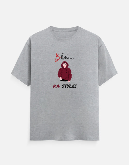 Snuggle Spot Men's Super Cotton Rich Graphic "Bhai Ka Style" Lighter Shade Printed Regular Fit Round Neck Half Sleeve T-Shirt