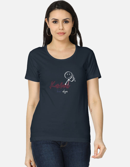 Snuggle Spot Women's Super Cotton Rich Graphic "Kamal Kar Diya" Light Shade Printed Regular Fit Round Neck Half Sleeve T-Shirt